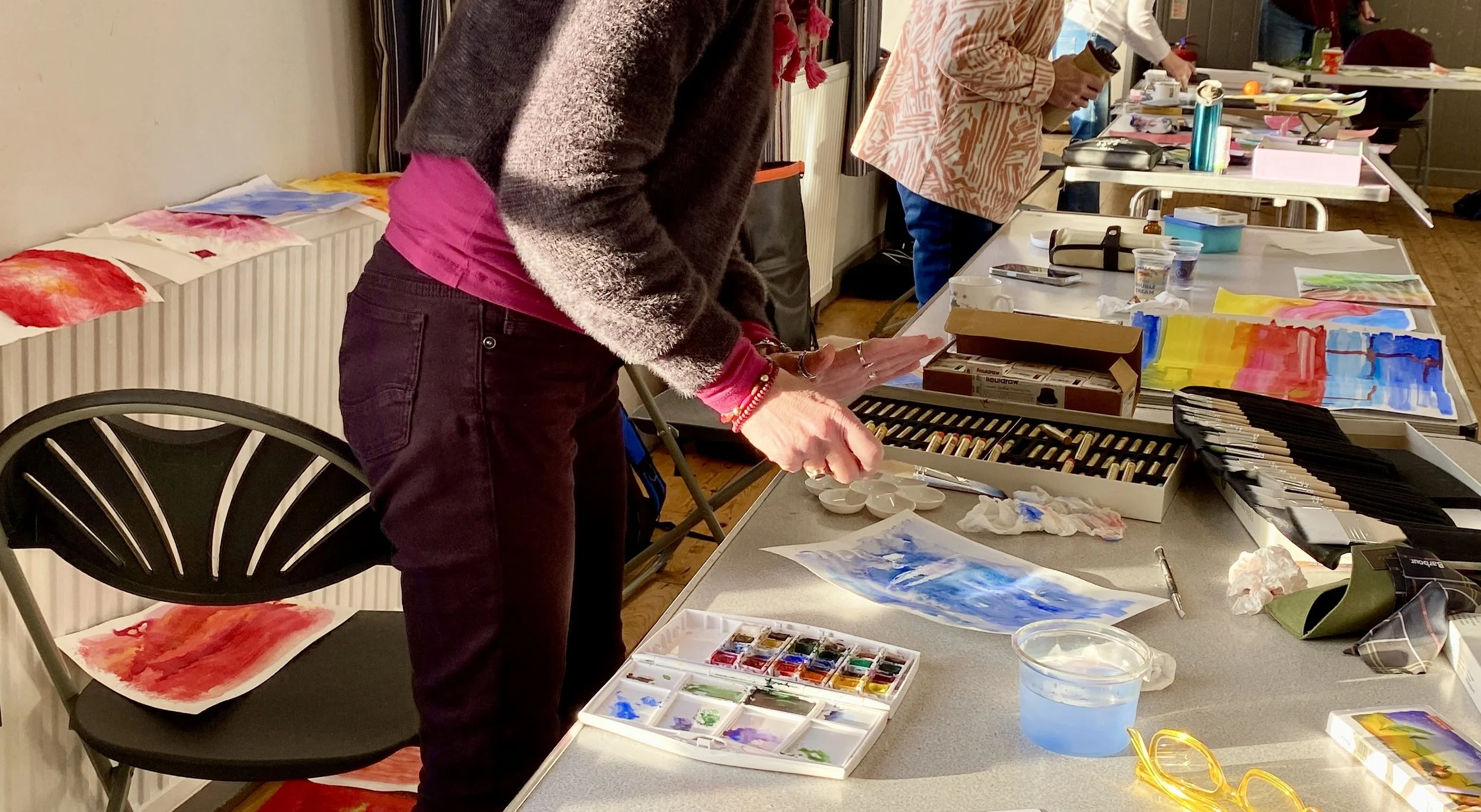 Our art class is suitable for all abilities, it is small, friendly and supportive. Based at Upperthong Village Hall, it is always a delight to be here, set in beautiful countryside with fine views all around. The windows are many and large, and the sunlight comes pouring in, creating an airy, happy and positive environment.