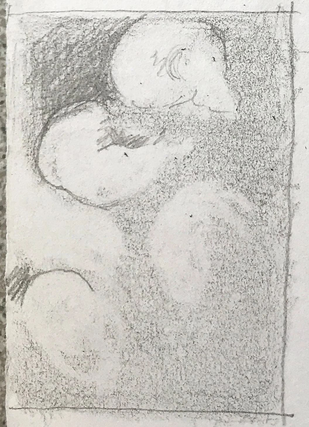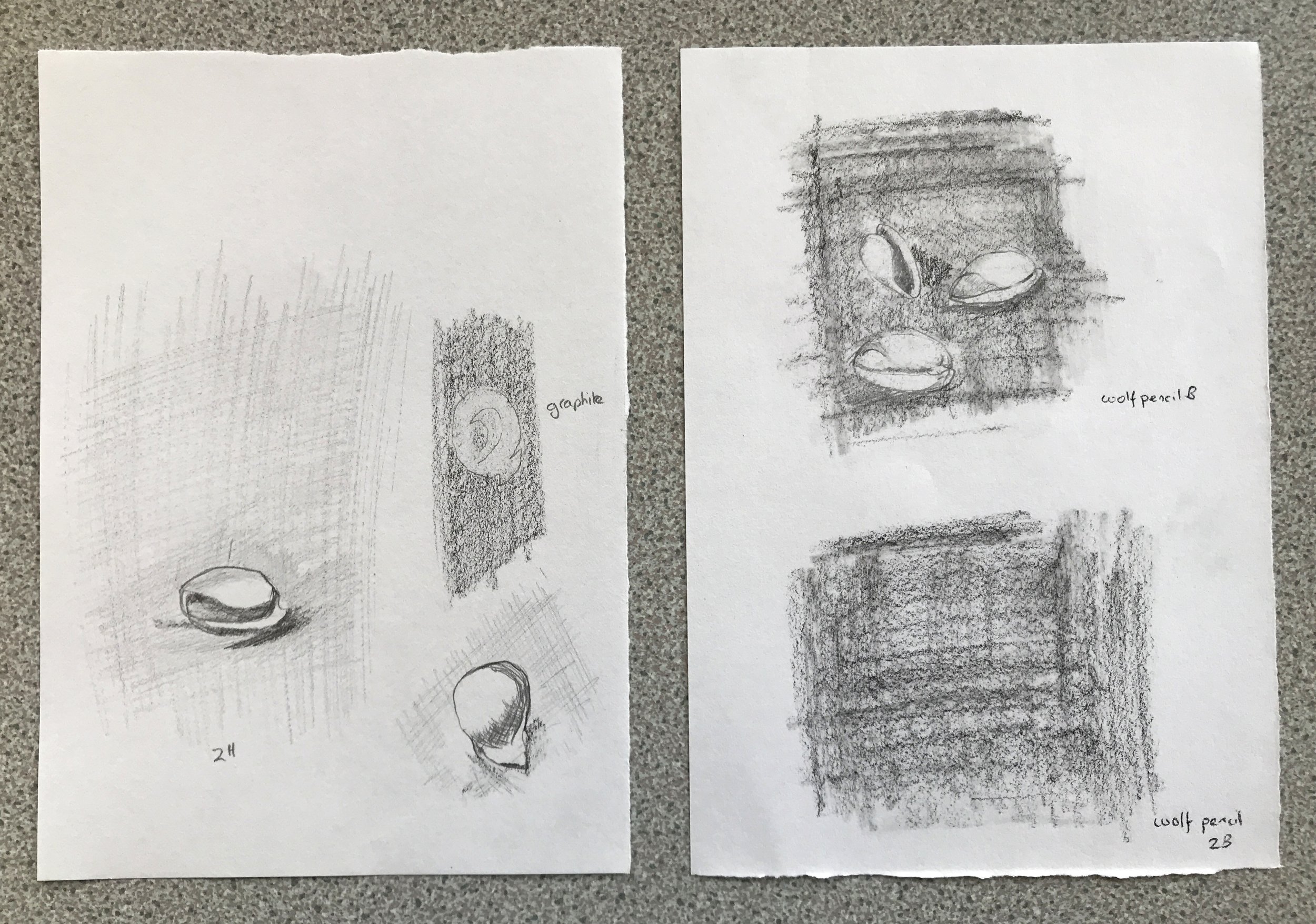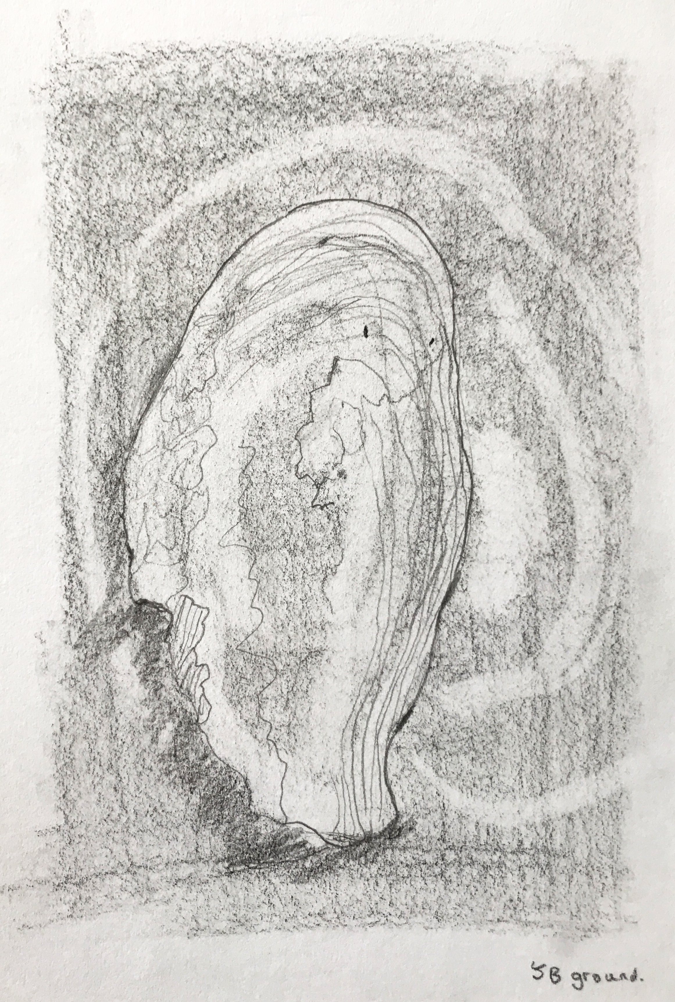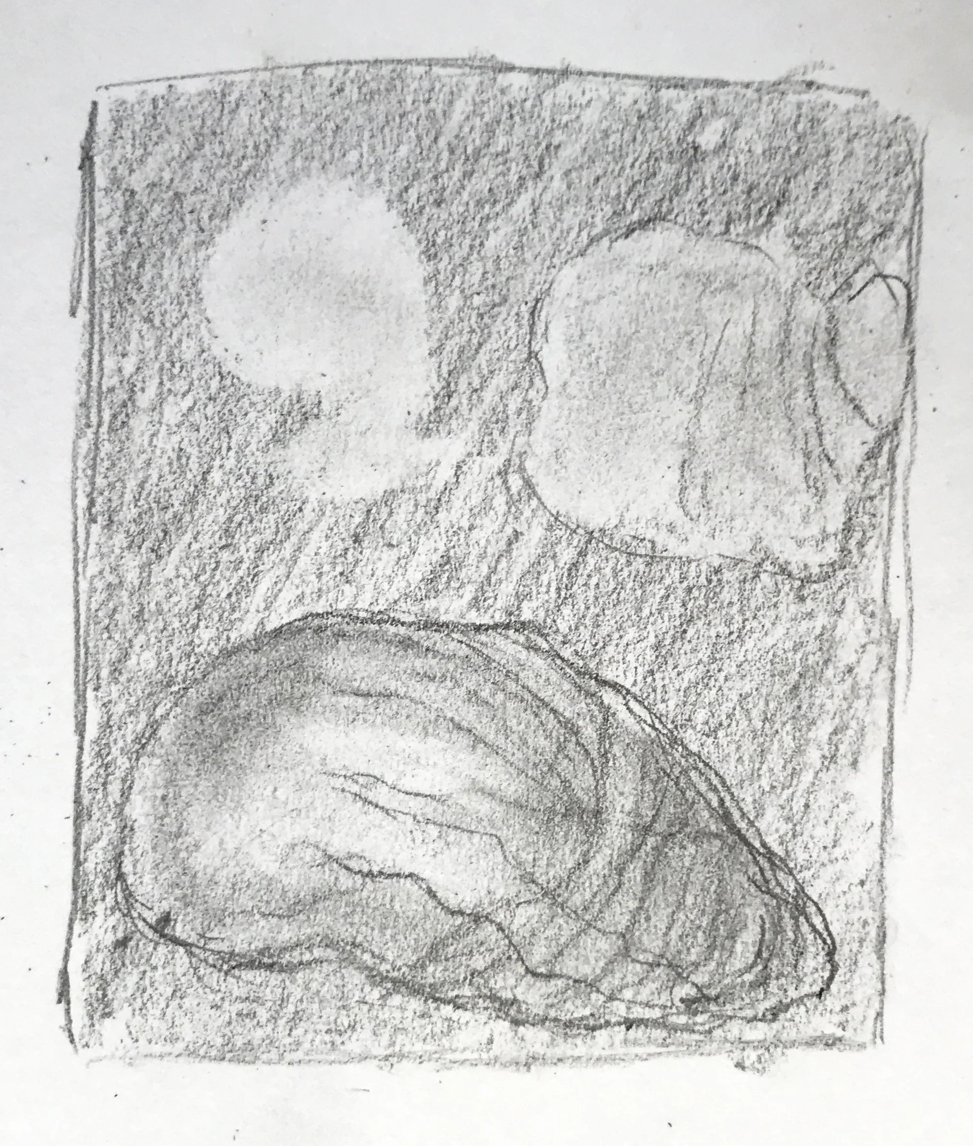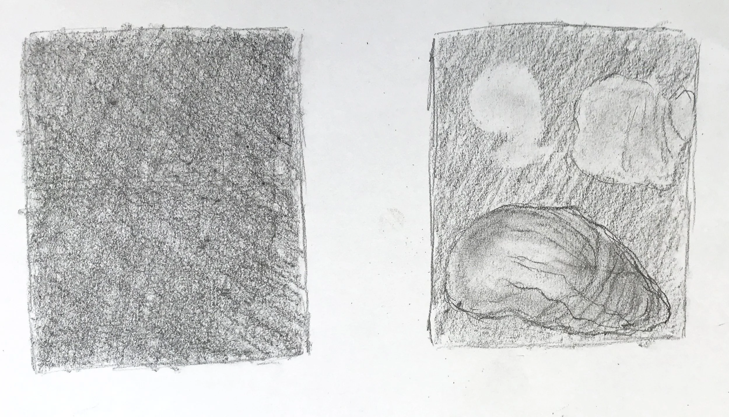 We created a mid-tone ground from either graphite pencil, graphite sticks, or charcoal, and then ‘drew’ out the lightest areas using erasers; so the erasures were our initial drawing tools (both plastic and putty rubbers).